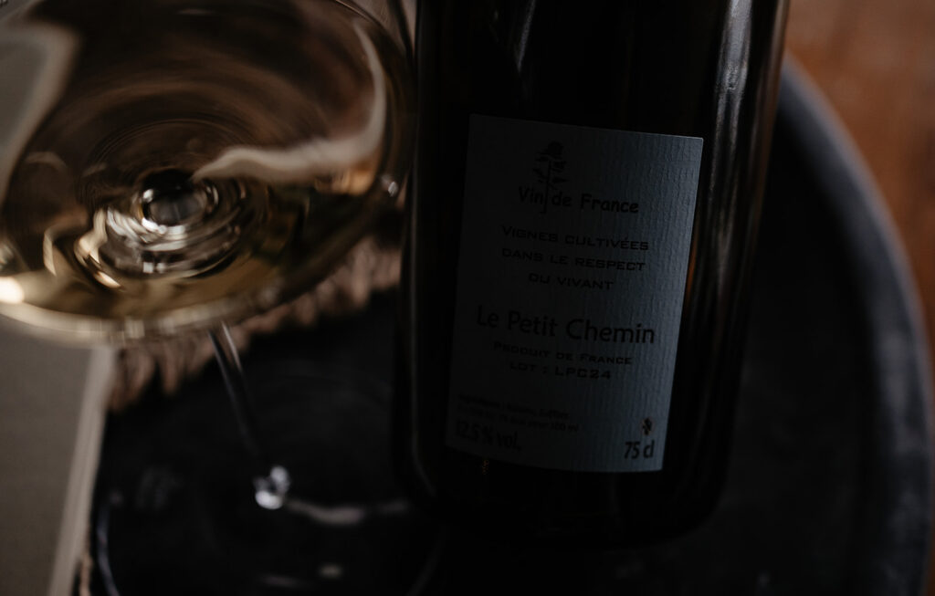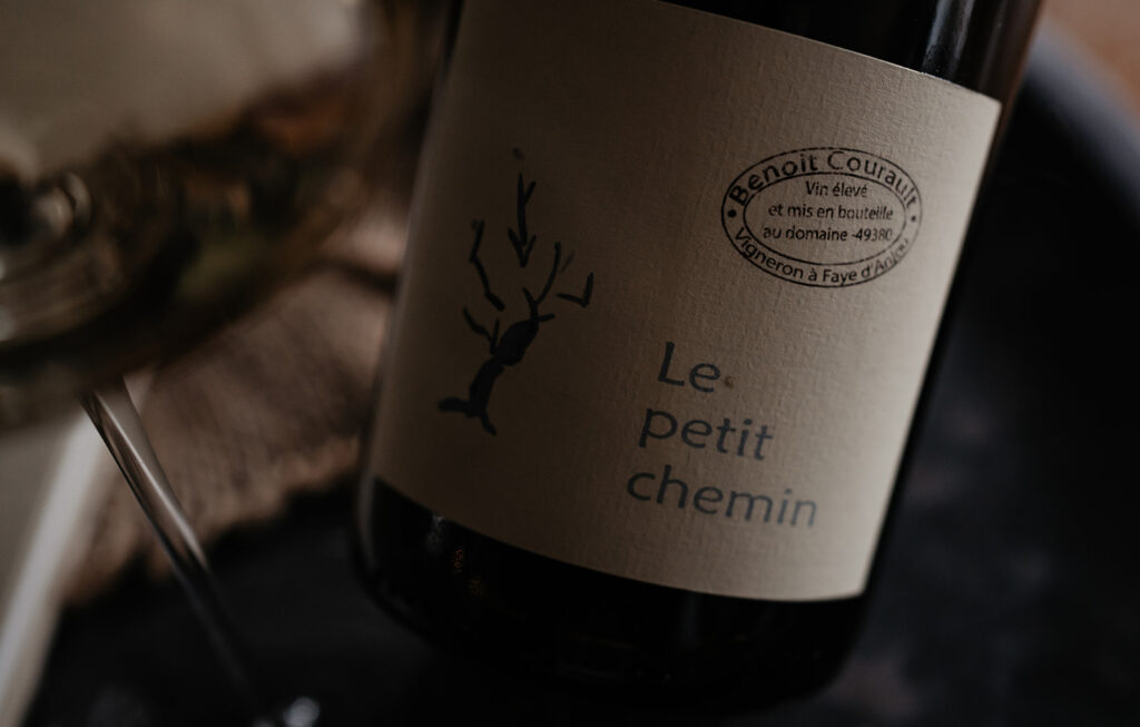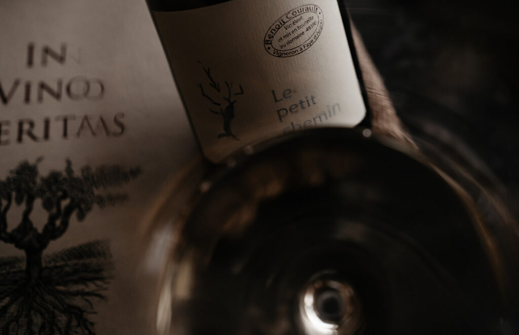 På skiffer och sand odlar Benoît Courault Chenin Blanc med låg intervention och hög precision. Spontan jäsning, lång vila på jästfällningarna och minimalt svavel ger viner som är koncentrerade men aldrig tunga. Le Petit Chemin speglar platsen med stram syra, mineralisk nerv och en stillsam intensitet. Torr Chenin med hög syra, skiffermineralitet och lång vila på jästfällning. Stram och levande med citrus, äppelskal och våt sten; hög, elektrisk syra, en lätt krämighet från jästfällningen och ett långt avslut som dröjer sig kvar.